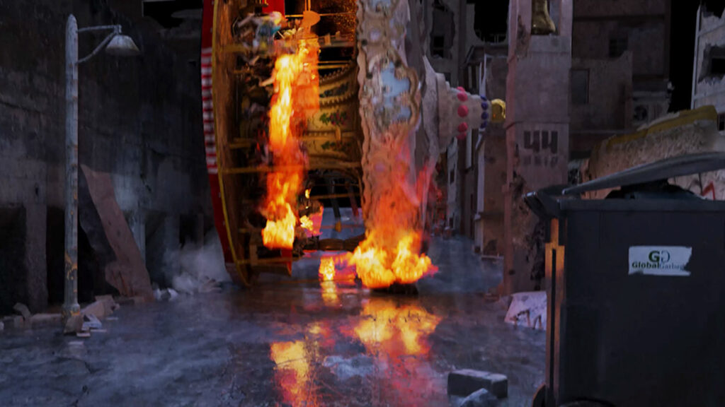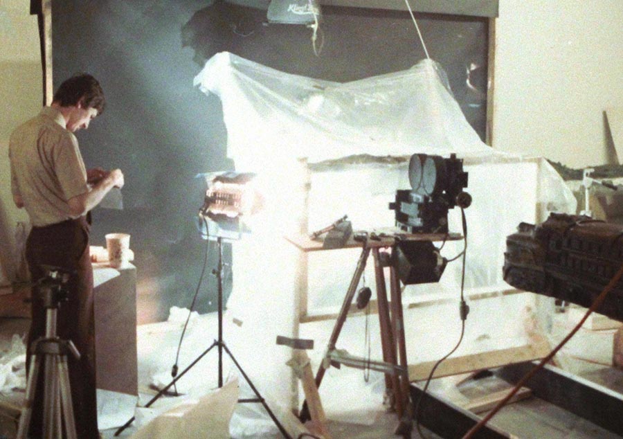 The original AMC spot got the company and myself a massive amount of press. Local and state interviews, me giving televised tours of our large studio crammed with 35mm cameras and miniatures on shelves from all our work. Like a big magic toy shop to them. AMC wanted more, hired us to do Midnight Movie Express 2 and this time paid us $60,000 to do “whatever i wanted.” I decided to do a direct sequel with a longer than expected running time, having an exec scold me and say – “You should be making movies!”